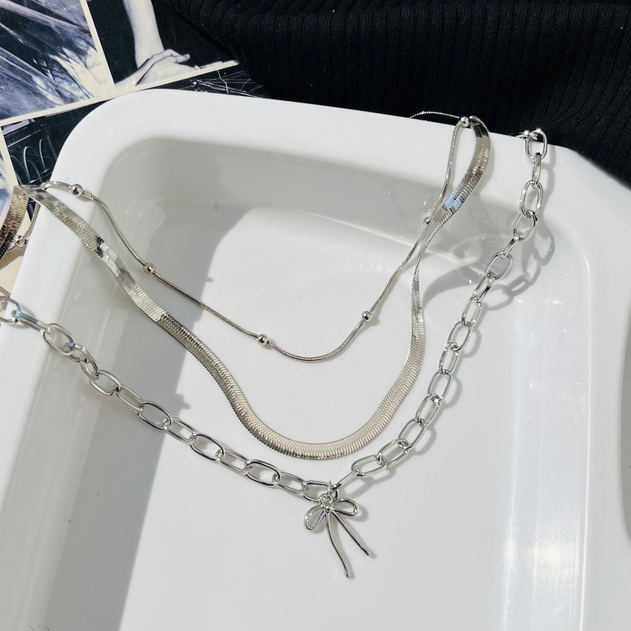 All New Three Layer Chunky Bow Necklace
